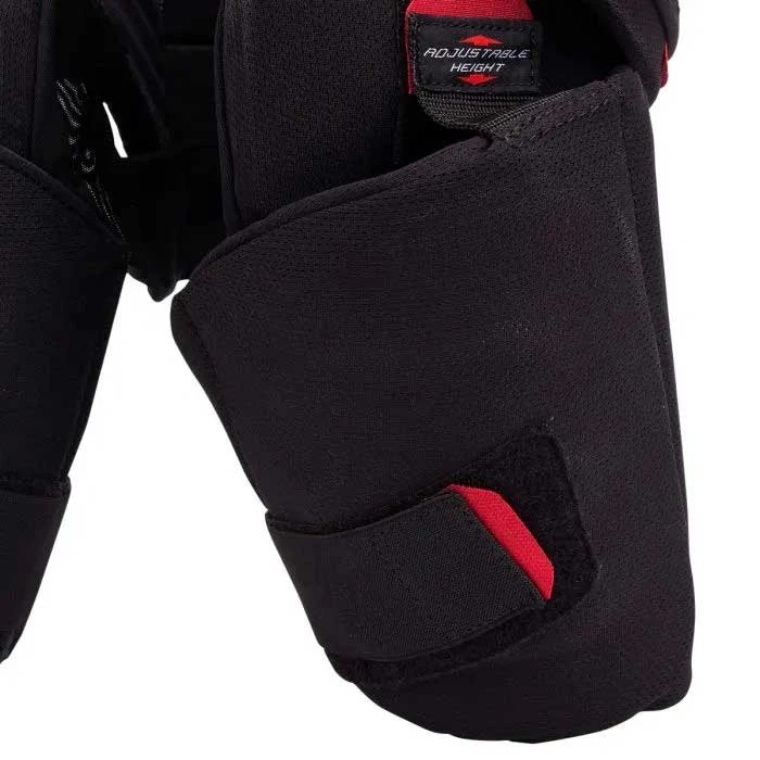 - Adjustable thigh guards help maximize protection/range-of-motion during skating